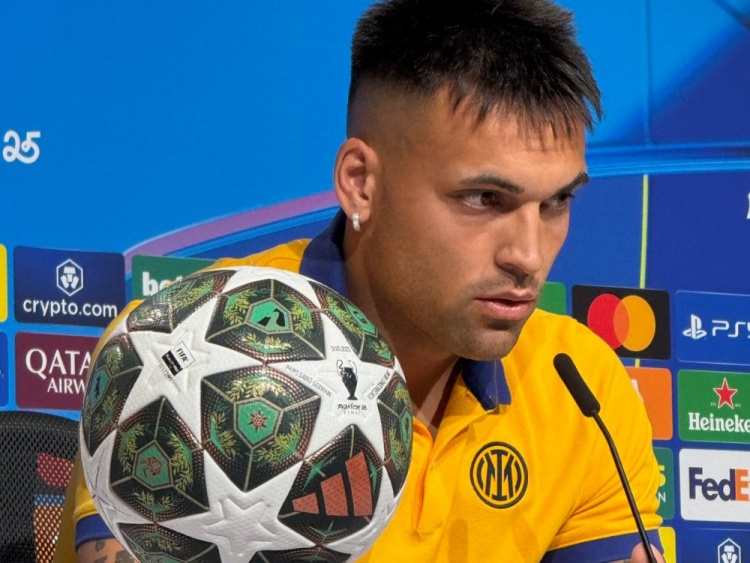 欧冠决赛赛前,国米队长劳塔罗出席新闻发布会。