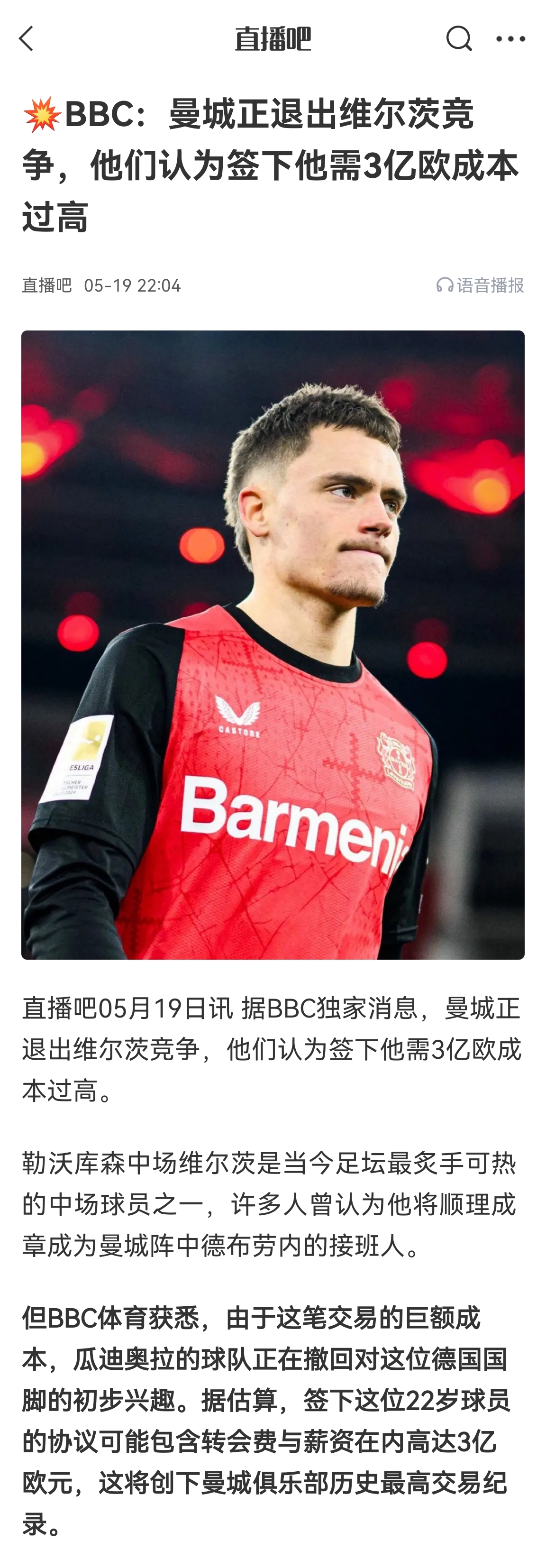 转会策略正面对决!利物浦1.5亿签维尔茨,曼城退出争夺后连签4人